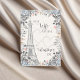 Romantic Valentine's Day card for wife has a blue and gray floral border, a sketch of the Eiffel Tower and two subtle hearts in the background.