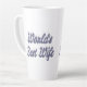 Latte mug with World's best wife in 3D blue-grey text. Mug available in several styles and colours.
