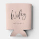 Wifey Calligraphy Blush Pink Name & Monogram Can Cooler