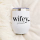 Celebrate the new Mrs. with this cute text-based honeymoon design featuring "wifey" in black lettering with a small heart illustration. Personalise with her name beneath in handwritten-style script. Matching "hubby" sold separately.