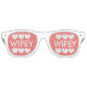 WIFEY wedding party shades for just married bride and new wife. Funny props for friends of soon to be married women. Cool wedding / marriage accessory for honeymooner, team bride, brides entourage, bridesmaid, maid of honour, flower girl etc Girls night out / Ladies night / bridal shower gathering. Cute coral pink and white sunglasses with custom personalised text and little love hearts. Customisable frame colour and background colour. ie girly pink. Fun gag party props for events, honeymoon, engagement, anniversary, bachelorette. Make your own for brides mother, sister, aunt etc.