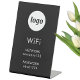 Easily add your own logo and WiFi network and password details for your employees, staff, clients and customers. Minimalist and professional to promote your brand. Change the background colour to match your branding. Perfect for a store, office, shop,restaurant, bar, bistro, cafe, hotel or any small business offering free WiFi.