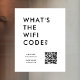 This stylish white window cling vinyl decal sign provides a clean and modern way for customers or guests to access your wifi network instantly with bold typography quote "What's the WiFi Code?". The design features a central QR code area that can be linked to your wifi details so users can scan to connect without typing a password. Enter your network name and any custom instructions that fit your need. The minimalist layout keeps everything readable which works well for cafes, salons, studios, offices, rental properties, pop ups or event venues. Because the template is fully editable, it adapts easily to branding updates or new wifi information. A practical and polished solution that helps streamline customer access and elevates your in person experience.