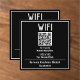 WiFi instructions With QR Code sign for customers, patrons, and guests. Use in bed and breakfast, guest house, Airbnb, restaurants, cafes or hotels. Card for customers, visitors, and tourists etc. Black, grey and white. There are various websites that allow you to create and download QR Codes free. QR Codes can be created for websites, emails, Wifi, Vcards, and many other uses. One example is https://www.qr-code-generator.com