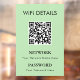 A modern and minimalist WiFi sign designed for businesses, hotels, restaurants, and Airbnb accommodations. Easily customise with your WiFi name, password, and QR code for a seamless guest experience. Ideal for reception areas, cafes, and offices, allowing visitors to connect instantly by scanning the QR code.