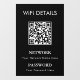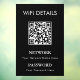 A modern and minimalist WiFi sign designed for businesses, hotels, restaurants, and Airbnb accommodations. Easily customise with your WiFi name, password, and QR code for a seamless guest experience. Ideal for reception areas, cafes, and offices, allowing visitors to connect instantly by scanning the QR code.