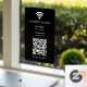 A simple custom black connect to WiFi business vinyl window cling decal sign template in a modern minimalist style which can be easily updated with your QR code, network details or custom text.