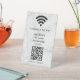 Elevate your space with this minimalist modern table sign, offering a hassle-free way for guests to connect to your WiFi. Upload your personalised QR code and logo, and seamlessly display your network name and password in crisp white lettering. A stylish, functional touch for any setting—perfect for businesses, cafes, or events.