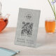 A modern and simple black table sign that allows your customers, clients and guests to easily connect to your WiFi network. Upload your QR code and logo, and add other details like your network name and password in white lettering.