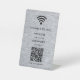 A modern and simple black table sign that allows your customers, clients and guests to easily connect to your WiFi network. Upload your QR code and logo, and add other details like your network name and password in white lettering.