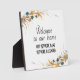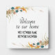 Floral sign for wifi connection details for a guest bedroom or a place of business.