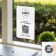 A simple custom connect to Wifi business window sign template in a modern minimalist style which can be easily updated with your QR code, network details, custom text and logo. Simply click 'personalise this design' to upload your company logo, web address and WIFI password information.