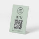 Modern and simple sage green table top pedestal sign to allow your customers, clients and guests to easily connect to your wifi network. Upload your QR code and logo and add any other details, such as the network name and password.