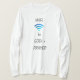 I love this shirt. I had written to the artist asking her if this picture was available on a shirt, and she wrote me back telling me where I could find the shirt. These shirts can be custom made to have a different saying. I loved this saying and went with it. The artist wrote me back later to tell me that she had seen my order go through. How's that for service? Pretty special. It's just as displayed. Perfect!