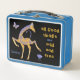 This cute lunch box features a cartoon giraffe with a boho style pattern on it. The giraffe cranes its neck to look at a matching butterfly. The stylised text at the side of the image says "all good things are wild and free". Your name is in blue at the bottom left, and everything is placed on a black background. Both sides of the box have the same image and text.