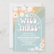 Celebrate your little ones special day with this whimsical "Wild and Three- birthday invitation. Featuring a pastel rainbow, flowers, hearts, butterflies, and a cheerful retro vibe, this design perfectly captures peace, love, and fun for a groovy third birthday party. Personalize with your childs name, party details, and RSVP information to create a unique keepsake. Ideal for boho, hippie, or rainbow-themed celebrations, this invitation adds charm and excitement to your event while making guests eager to join the fun.