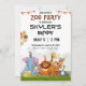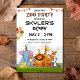 Get ready for a wild celebration with this fun and vibrant zoo party birthday invitation! Perfect for your little animal lover's special day, this invitation features a cheerful group of cartoon zoo animals, including a friendly lion, a tall giraffe, a gentle elephant, a cute panda, a big bear, and many more. The design is topped with a festive pennant banner and stylish animal-print balloons, setting the stage for a memorable safari or jungle-themed adventure. Easily personalise the invitation with your child's name, party date, time, address, and RSVP information to gather all your party animals for the big day!