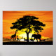 Wild Animals on African Savanna Sunset Poster
