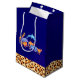 A gift bag designed with an exotic orange coloured leopard print border along the bottom. Illustrated with a digital watercolor image of a herd of wild animals