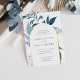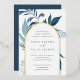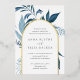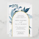 Our Wild Azure wedding invitation surrounds your wedding day details with an arch of vibrant watercolor foliage. A modern yet organic choice for winter or spring weddings featuring intricately painted botanical elements. Colorway: Wild Azure, a medley of frozen blues on a white background with gold foil trim.