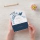 Our Wild Azure wedding invitation surrounds your wedding day details with an arch of vibrant watercolor foliage. A modern yet organic choice for winter or spring weddings featuring intricately painted botanical elements. Colorway: Wild Azure, a medley of frozen blues on a white background.