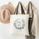 A sweet and elegant gift for the mother of the bride, tote features a blue and white watercolor botanical wreath with "mother of the bride" inscribed inside in hand lettered script. Personalise with your wedding date or the recipient's name beneath.