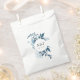 Winter chic wedding favour bags say thank you to guests in elegant style. Bags feature a wreath of winter watercolor foliage in icy shades of blue, framing your initials or monogram and wedding date. Designed to coordinate with our Wild Azure wedding and special event collection.
