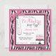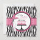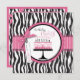 Zebra chic print with hot pink birthday cake with ribbon and bow trims.