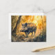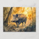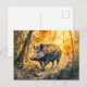 Wild boar in forest watercolor painting postcard