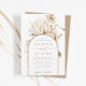 This wedding invitation features painted watercolor protea, dry pampas grass, wildflowers, exotic leaves with an arch frame, and a camel colour background on the back. For more advanced customisation of this design, please click the BLUE DESIGN TOOL BUTTON. Matching items are also available.