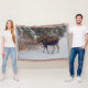 A beautiful large Moose enters a sheltering forest in winter. A charming scene to add a wilderness feel to your Den, Living-room, Office or Cabin.