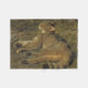 This design features a painting by Rosa Bonheur (1822–1899), who was a French artist best known as a painter of animals. It shows a wildcat lying on the grass next to a tree. It has a long bushy tail and fluffy fur, but even though it appears to be as cute as a kitten, it is a dangerous predator that hunts mostly at night. Its claws on the edge of its paws and its sharp teeth help it to hunt prey. The wildcat has light brown fur. It has whiskers on its cheeks like domesticated cats. The original artwork was painted by Rosa Bonheur in 1850.