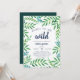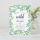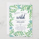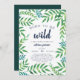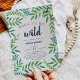 Adorable baby shower invitations for your wild one on the way feature a border of vibrant green watercolor jungle leaves. "Born to be wild" appears in navy blue lettering, with your baby shower details beneath.