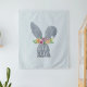 Our sweet watercolor rabbit silhouette is adorned with a watercolor flower crown, with the words "wild child" in white calligraphy script.