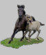 A Duelmen pony foal with its mum, dun coat colour, at a Gallop. Dülmen ponies are the last feral horses in Germany, this native horse breed live wild in the Merfelder Bruch.