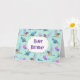 A multicolored watercolor pattern with various wild and exotic tropical birds. Some are flapping their wings others standing still. Colors include baby blue, pastel pink, purple and warm golden orange. The colors mix and blend together creating a lovely design. A pretty and unique artistic work. A fancy frame with a gold border is on the front of the card with Happy Birthday written in side. The inside of the card has a birthday message which can be customized if you wish.