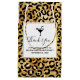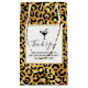 A thank you gift bag for a bachelorette party. Designed with a stylish pattern. Exotic black leopard spots on a gold background. Wild yet elegant style. A white coloured square frame with a faux gold foil borders layered over top with your personalised text inside. Illustrated with a fancy black silhouette martini glass.