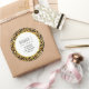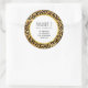 Business stickers with a stylish pattern. Exotic black leopard spots on a gold background. Wild yet elegant style. Layered over top is a white circle frame with a faux gold foil border, with your personalised text inside.