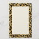 Stationery paper with a stylish pattern. Exotic black leopard spots on a gold background. Wild yet elegant style. A n antique yellow coloured rectangle frame with a faux gold foil border layered over top for you to write inside.