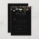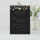 These wild floral black wedding menu choice cards are perfect for a rustic wedding. The design features watercolor pink, blush, purple, navy and white elegant flowers with emerald green leaves in a dark background.