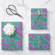 Romantic and sophisticated wrapping paper sheets with wild florals in jewel-tones: purple and greens on a rich teal background. Also available in several other colour options. Perfect for any occasion, such as Mother's Day, birthdays, bridal showers, and engagement parties. All three flat sheets have the same pattern.