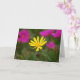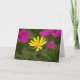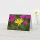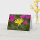 A greeting card with wild flowers on the front: yellow daisy with paper roses in the background. The photo was taken at the Marconi Conference Centre in Marshall, California.