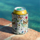 Wild flowers and butterflies on white can cooler
