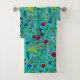 Wild flowers and moths on teal bath towel set