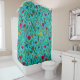 Wild flowers and moths on teal shower curtain