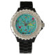 Wild flowers and moths on teal watch