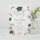 Gorgeous watercolor flowers in purple and white, along with a diploma and graduation cap