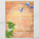 Wild flowers, strawberry flowers and harebells, on an orange coloured worn board is a colourful craft paper for scrapbook, junk journal or any paper craft projects. The other side of a paper has a simple board image.