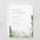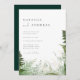 Wild Forest Foliage Wedding Invitation. Watercolor greenery and gold botanical accent frame with emerald green colour backing.