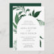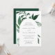 Our Wild Forest wedding invitation surrounds your wedding day details with an arch of vibrant watercolor foliage in forest and hunter green. A modern yet organic choice for winter or spring weddings featuring intricately painted botanical elements.